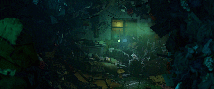 This work wants to talk about the relationship between children and adults. About loneliness, and those things that you think you've escaped, but you can’t escape after all. The room represents the inner world, the boy gets into his father’s room, longing to connect with him ; the giant bug is a metaphor for loneliness, depression and his memories about his father.